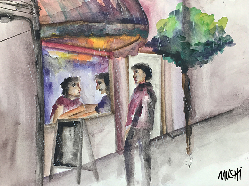 Apenas abro la puerta del café, el brazo hidráulico me empuja hacia fuera. En la calle, decenas de extraños observan a un hombre como yo que corre desesperado. Nadie se percata que detrás del ventanal del salón, otro como yo se queda sentado, absorto, mirando.