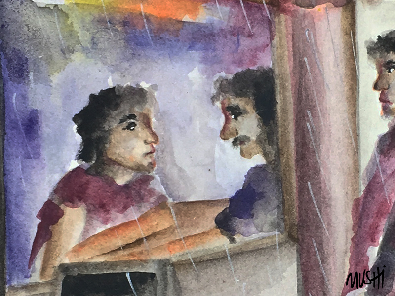 El mesero insiste, pregunta si me siento bien y le grito que se largue. Un silencio contundente se posa en el salón. Todos me miran y él, ya fuera de su amante, me mira de frente otra vez; parece entender, sí, entiende, entiendo, y me levanto, nos miramos, nos reconocemos incomprensiblemente; ¿qué pasaría si habláramos, si descubriéramos que somos otros o que somos el mismo?, ¿y si se acercara y me abrazara, con mi propio olor, con mis manos, y buscara mi boca suya, su cuerpo mío?, tal vez entonces volveríamos a ser uno…