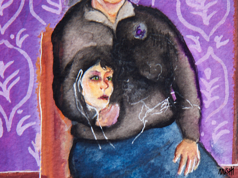 mundo de mierda, murmura. Una blusa oscura encaja en sus brazos y una falda larga, muy larga. Los zapatos bajos y lascados. Se estira las medias hasta que dejan ver su piel de pelusas negruzcas. Un broche de amatista incrustado en plata se prende en el torso, una rosa tosca.
