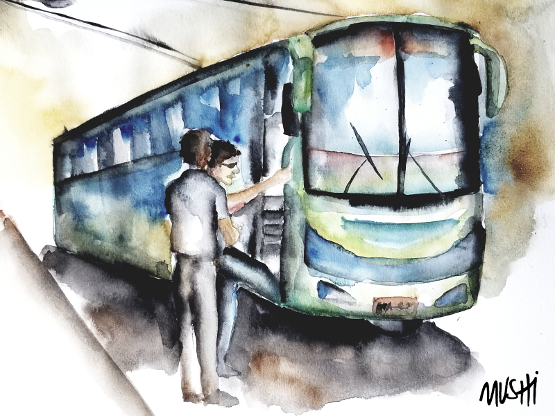 El bus avanza con lentitud, paquidermo agotado por el sopor del verano. Acelera y deja tras de sí la aglomeración que persiste en las transversales, gente que discute, otros que esperan impasibles. Los policías terminan por hacerse a un lado y discuten entre sí por algún procedimiento que pasaron por alto y empeoró la situación. La ciudad es un atolladero interminable.